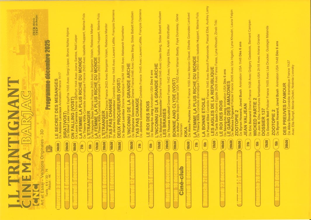 BARJAC - Programme du cinéma JL Trintignant du 3 au 30 décembre