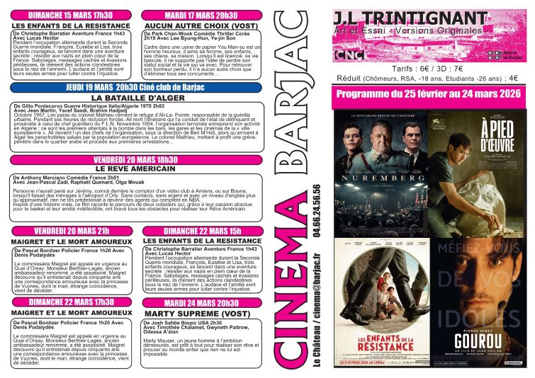 BARJAC - Programme du cinéma JL Trintignant du 25 février au 24 mars 2026