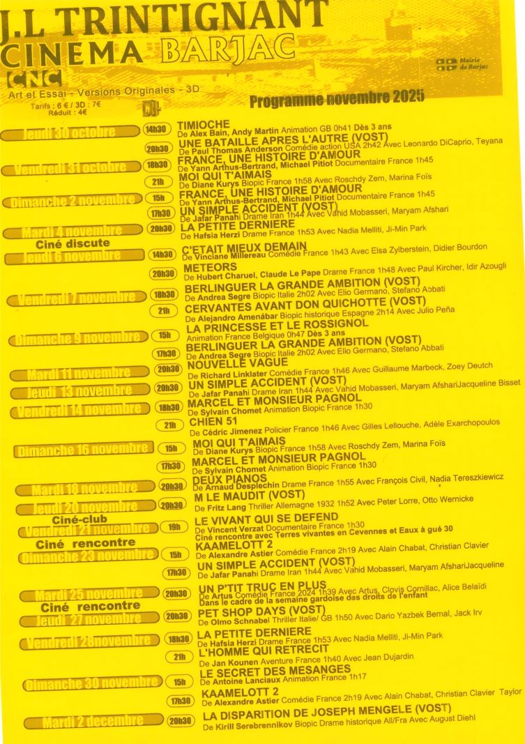 BARJAC - Programme du cinéma JL Trintignant du 30 octobre au 2 décembre
