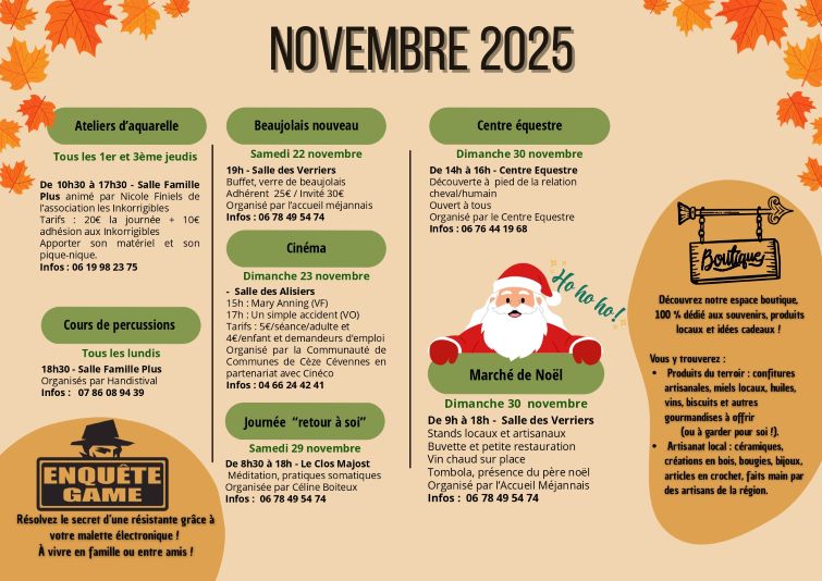 ***Programme des manifestations à Méjannes-le-Clap*** Novembre 2025