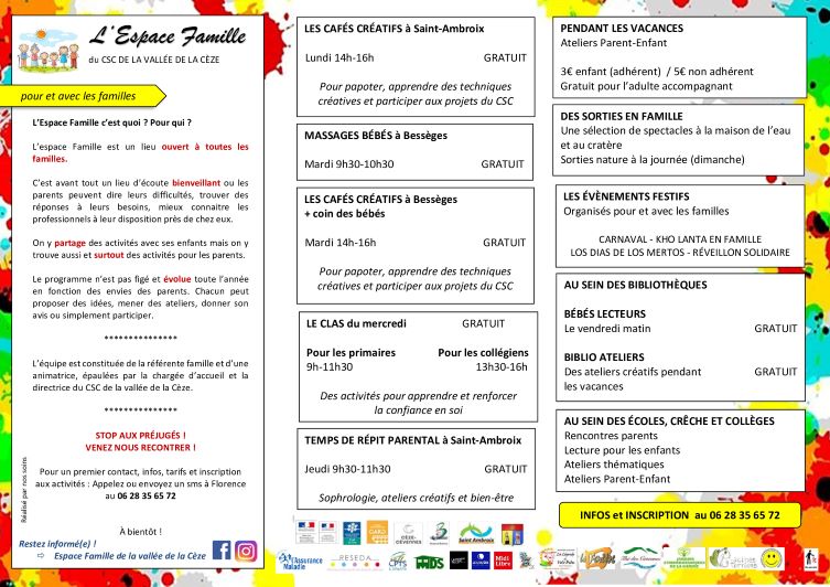 Programme de L'Espace famille du CSC Vallée de la Cèze.