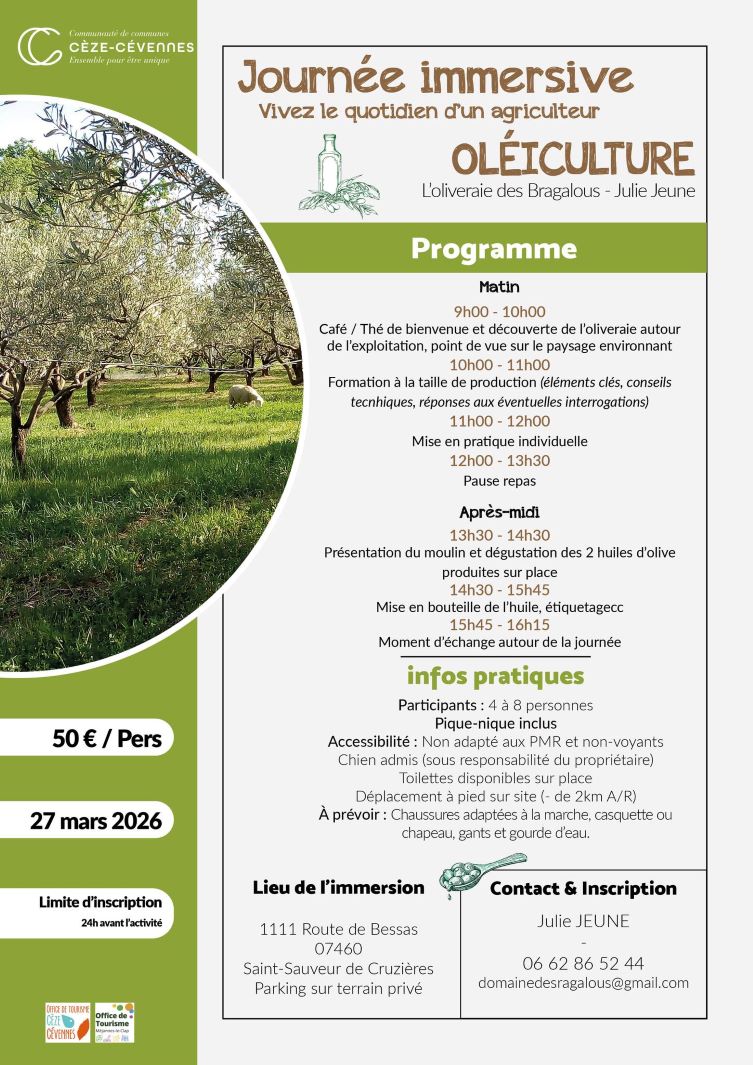 Vendredi 27 mars, vivez le quotidien de Julie JEUNE. L'Oliveraie des Bragalous.