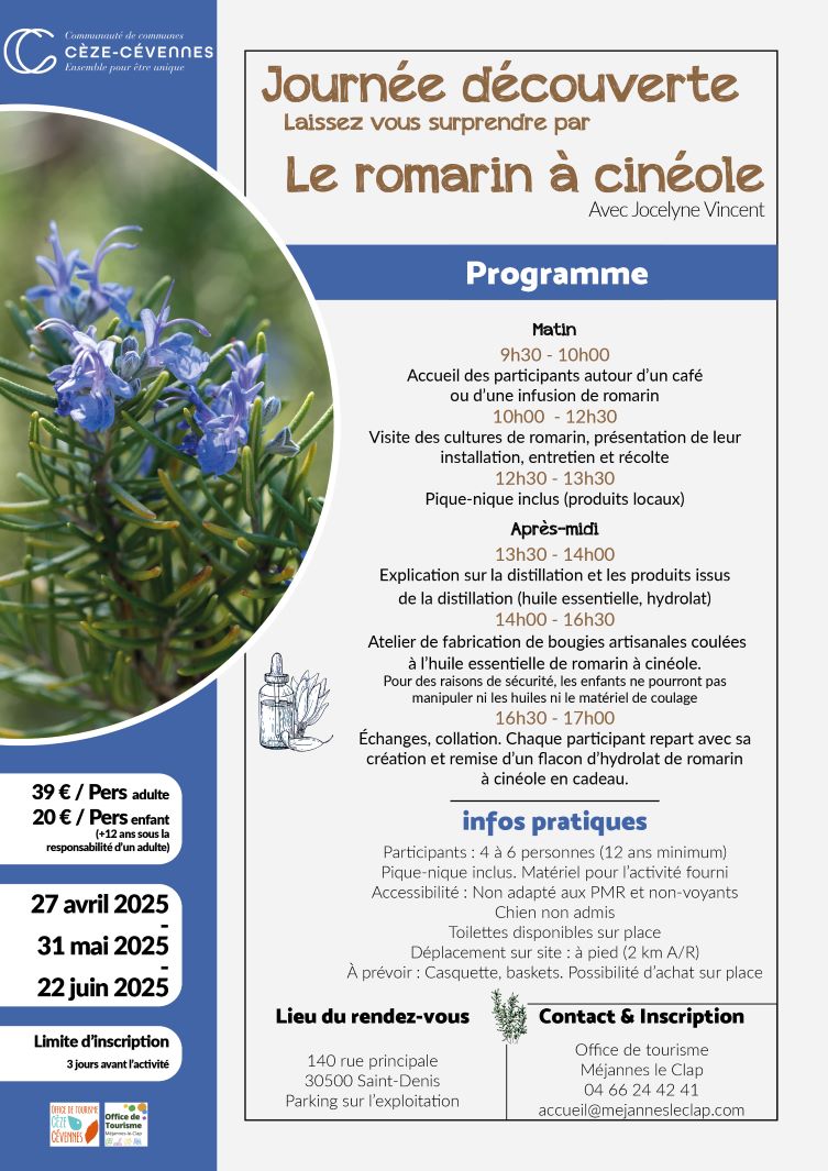 Journée découverte "le romarin à cinéole" : 27 avril, 31 mai et 22 juin 2025 - 30500 Saint-Denis.