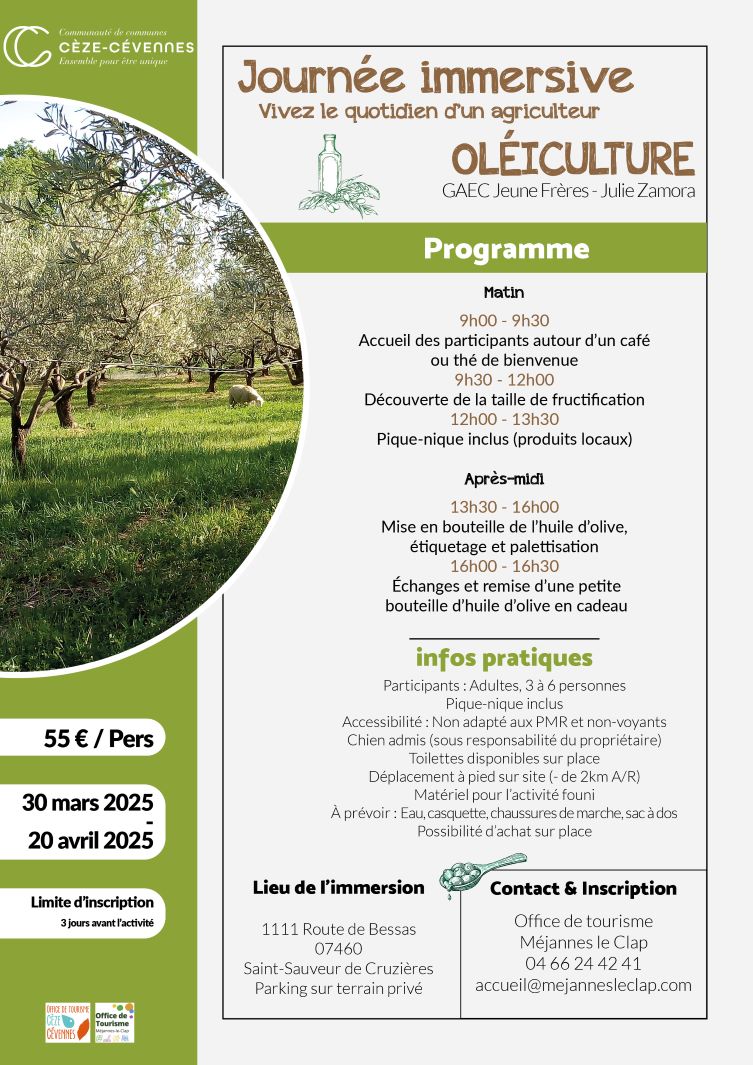 Journée immersive "oléiculture" : 30 mars et 20 avril 2025 - 07460 Saint-Sauveur-de-Cruzières.