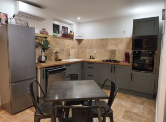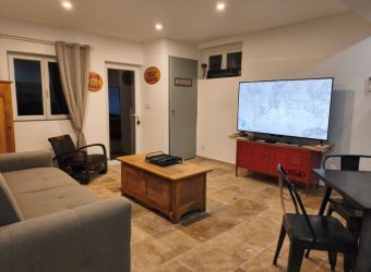 Gîte individuel rénové dans le Gard, aux portes de l'Ardèche, pour 4 personnes: cuisine équipée, salon, chambre, salle d'eau, climatisation, terrain clos de 3000m², parking, piscine partagée et espace détente.