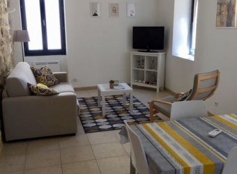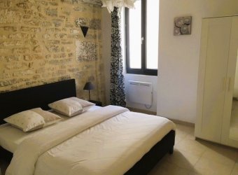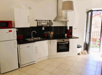 Appartement mélangeant style ancien avec pierres apparentes et le modernisme. Séjour avec balcon / cuisine équipée, 1 chambre, salle d'eau avec douche et toilettes.