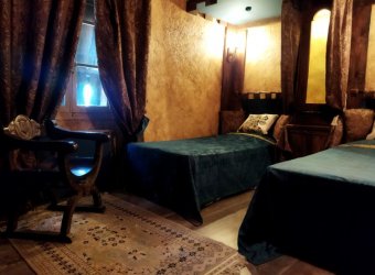 La chambre des Chevaliers possède 2 lits d'un personne. Les tentures et dessus de lits sont également en velours italien.